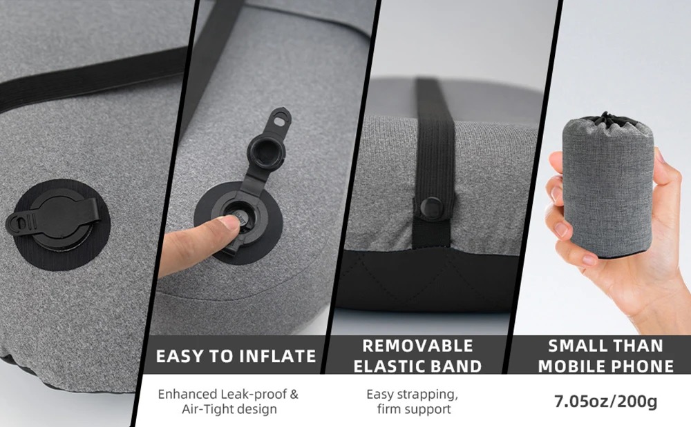 ¿Viajes incómodos? Nuestra almohada inflable ofrece soporte cervical al instante.